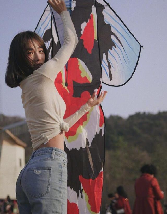 运动博主陈暖央户外放风筝晒美拍